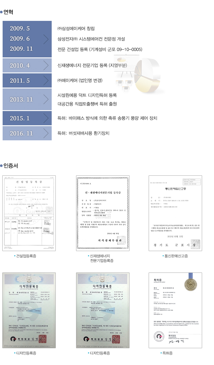 홈 > 회사소개 > 연혁/인증서